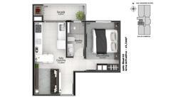 Final 06 - Aptos de 1 dormitório com 1 box de garagem. Área privativa de 42,50 m².