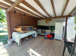 Área gourmet completa com churrasqueira, forno e fogão a lenha