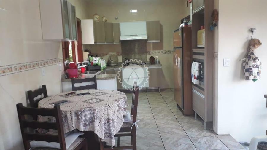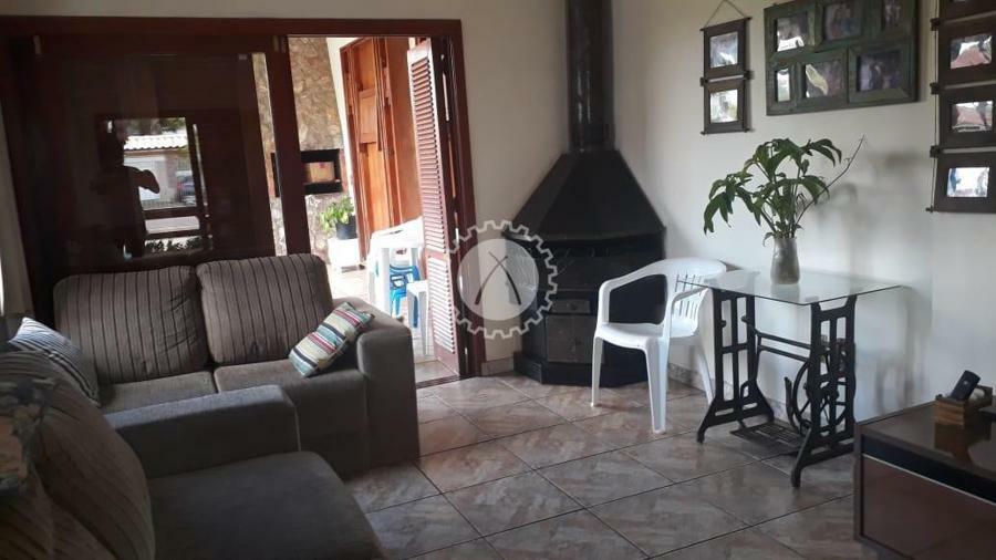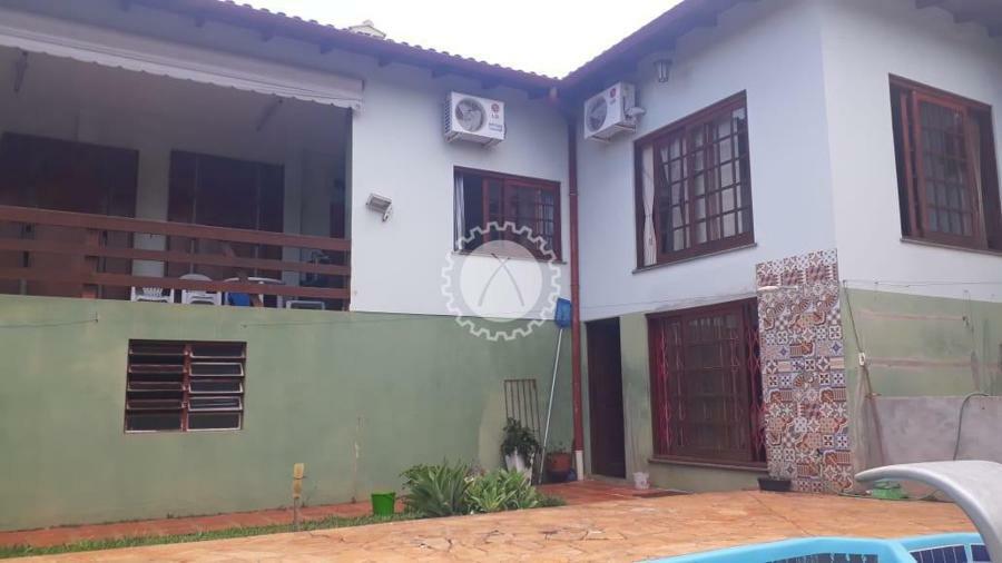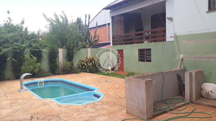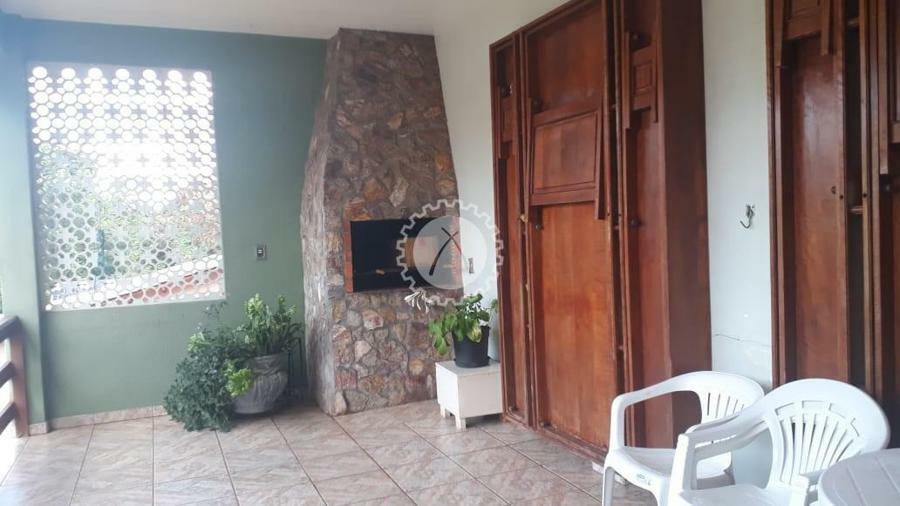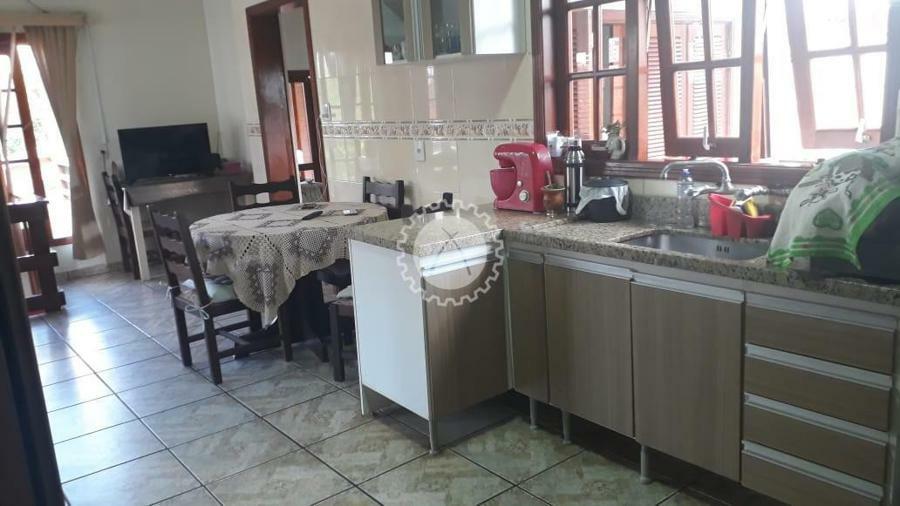 A casa conta com 3 dormitórios, sendo uma suíte com banheira, 3 banheiros, sala de estar, sala de tv, cozinha, lareira, uma área para festas com duas mesas grandes suspensas para até 20 pessoas, churrasqueira, piscina, pátio. A casa conta ainda com um subsolo com mais seis peças além de banheiros e lavanderia.