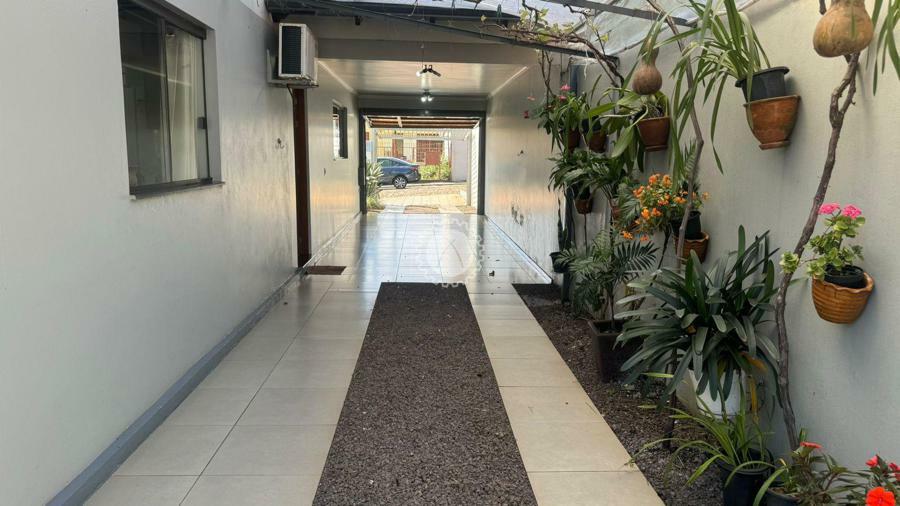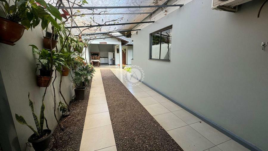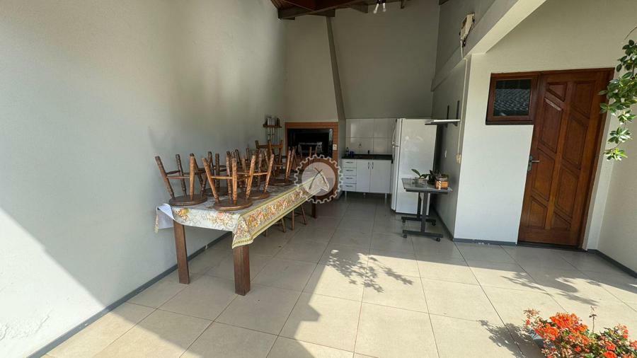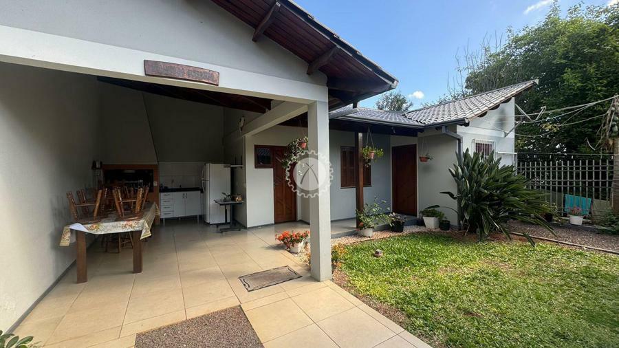 Residência em ótimo estado de conservação, com 3 dormitórios, incluindo uma suíte. A casa conta com uma sala de estar e jantar integradas, equipada com lareira. A cozinha é espaçosa, e há uma lavanderia separada. A garagem é espaçosa, com capacidade para até 4 veículos, sendo 2 vagas cobertas. O imóvel também possui um quiosque com churrasqueira e um anexo que oferece mais um dormitório ou depósito, além de uma sala de estar e jantar adicionais.