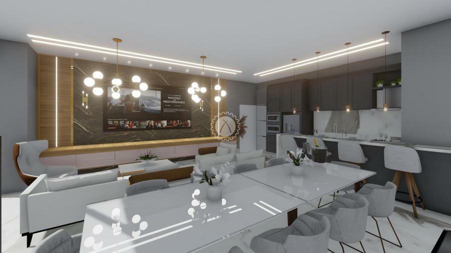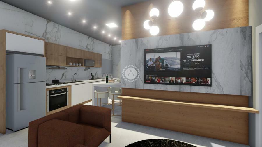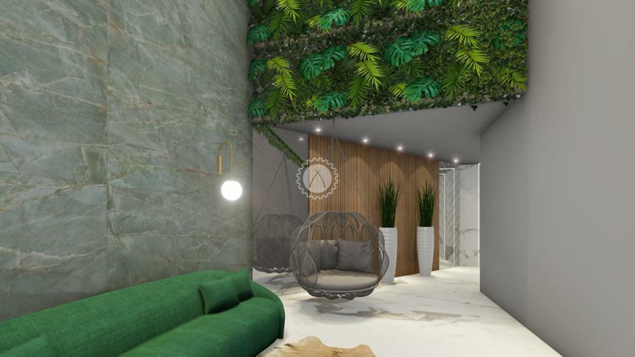 O Hall Social de entrada contempla pé direito duplo;