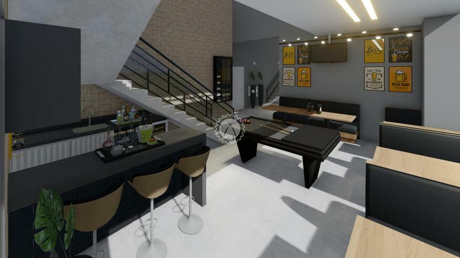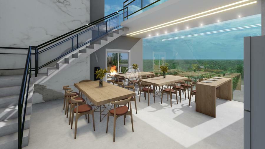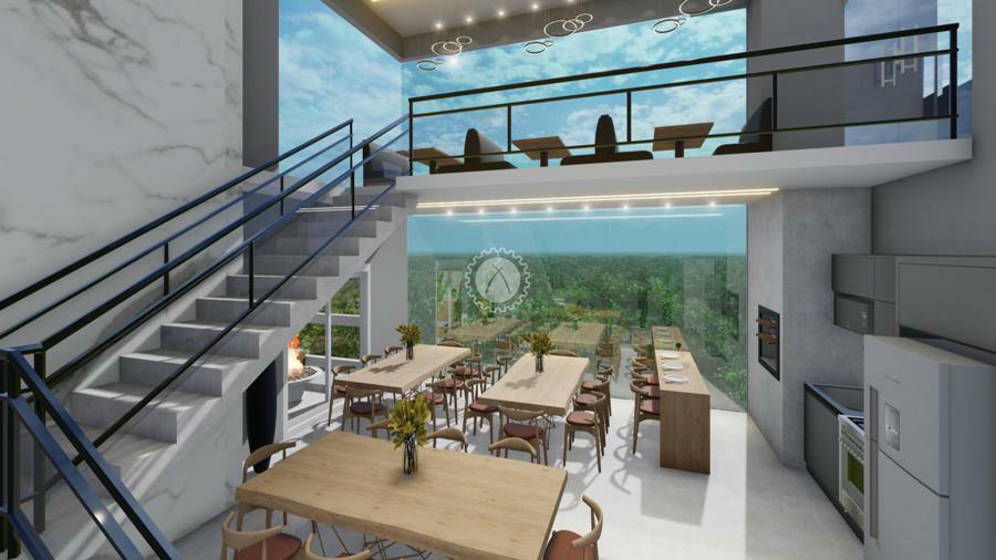 Salão de festas com Pé direito duplo, e Mezanini,