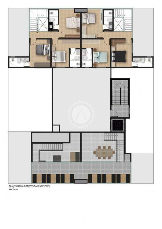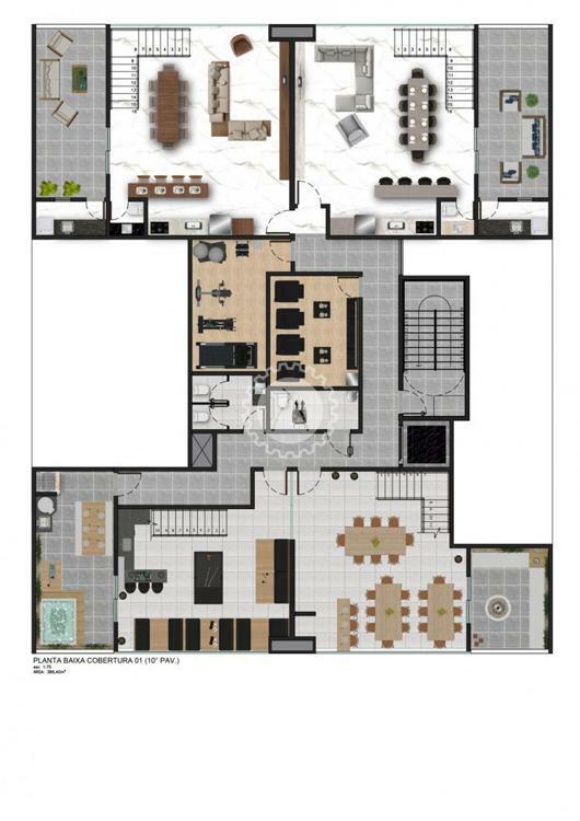 2 coberturas duplex com pé direito duplo.